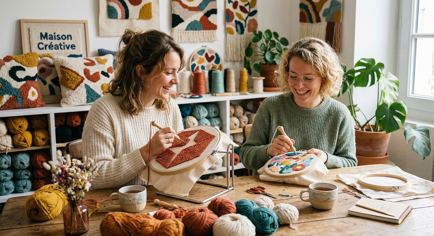 Ce fut un véritable coup de foudre créatif : le bruit rythmique de l'aiguille qui traverse la toile, la douceur de la laine et la satisfaction de voir un motif prendre vie... Nous tenions enfin notre secret pour déconnecter !